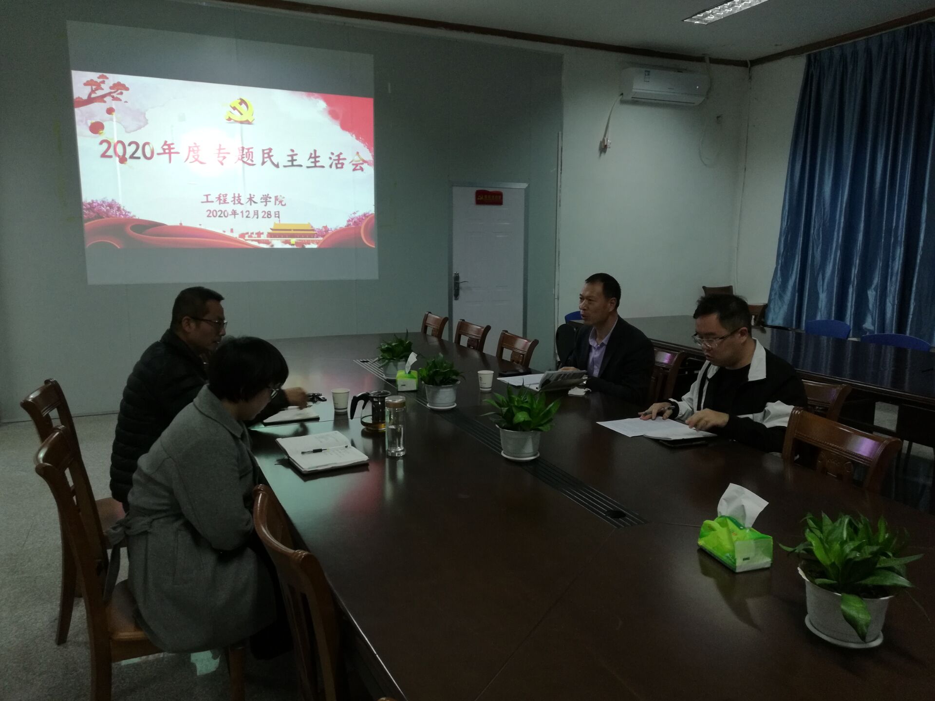 按照校党委《关于召开2020年度专题组织生活会的通知》要求,12月28日下午,m88官网领导班子围绕“全面从严治党,推动学校高质量发展”的会议主题在泽钏楼四楼会议室召开专题民主生活会,会议由m88官网党总支书记曾凤生主持。
