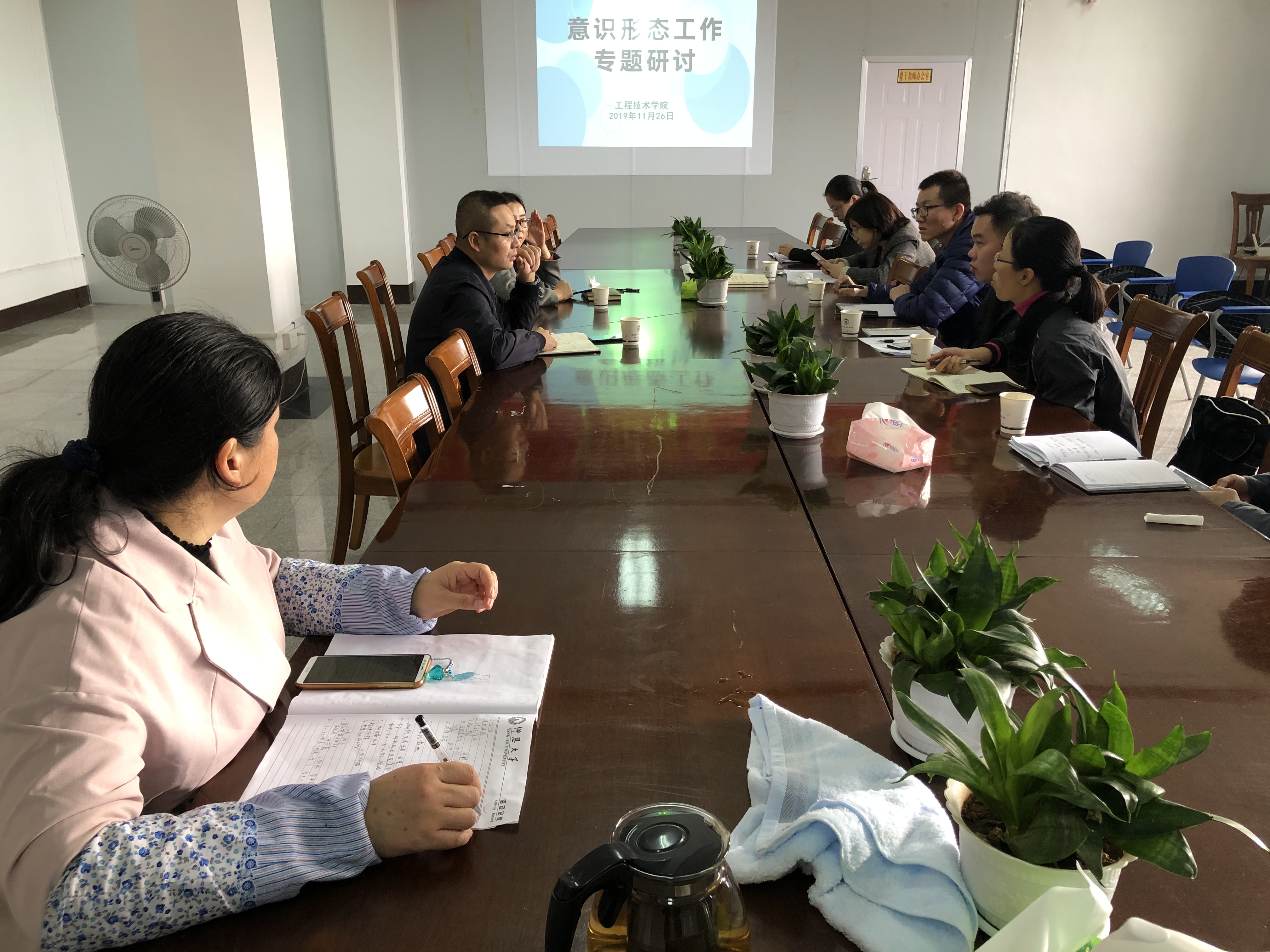 为贯彻落实中央、学校关于意识形态工作的决策部署和指示精神,加强和改进m88官网意识形态工作,落实党管意识形态原则,牢牢掌握意识形态工作的领导权、主动权,11月24日下午,m88官网在泽钏四楼会议室召开意识形态工作专题第二次研讨会,党总支书记曾凤生,常务副院长兼总支副书记金承勇,总支副书记吕思仁,系部主任,总支委员参加会议。