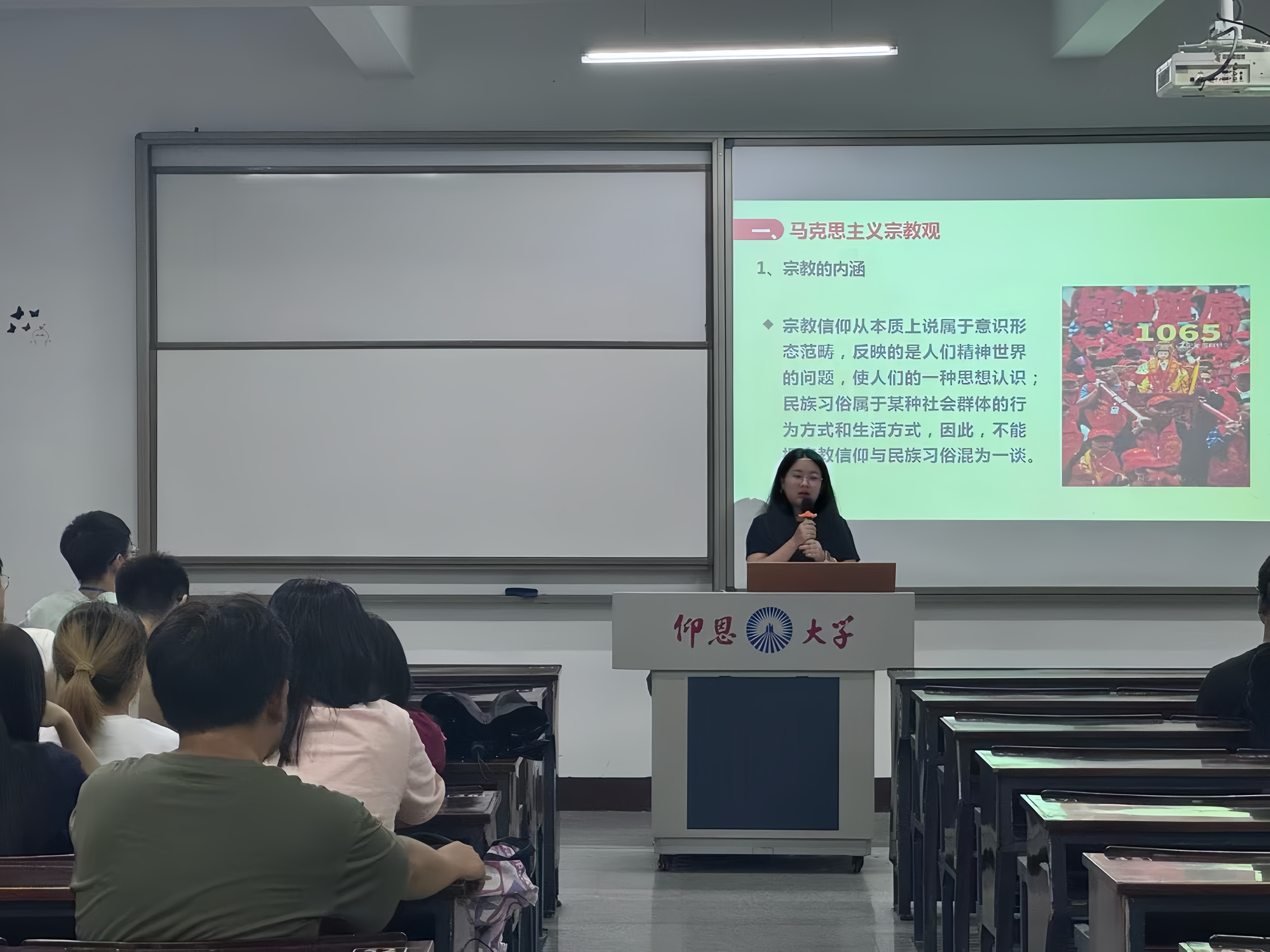 为贯彻发展团员最新要求,加强对青年员工的思想引领,2025年10月16日,m88官网团委书记刘炫圻老师在仰恩楼D1-405教室为团员开展了以“马克思主义宗教观”为主题的团课教育活动。
