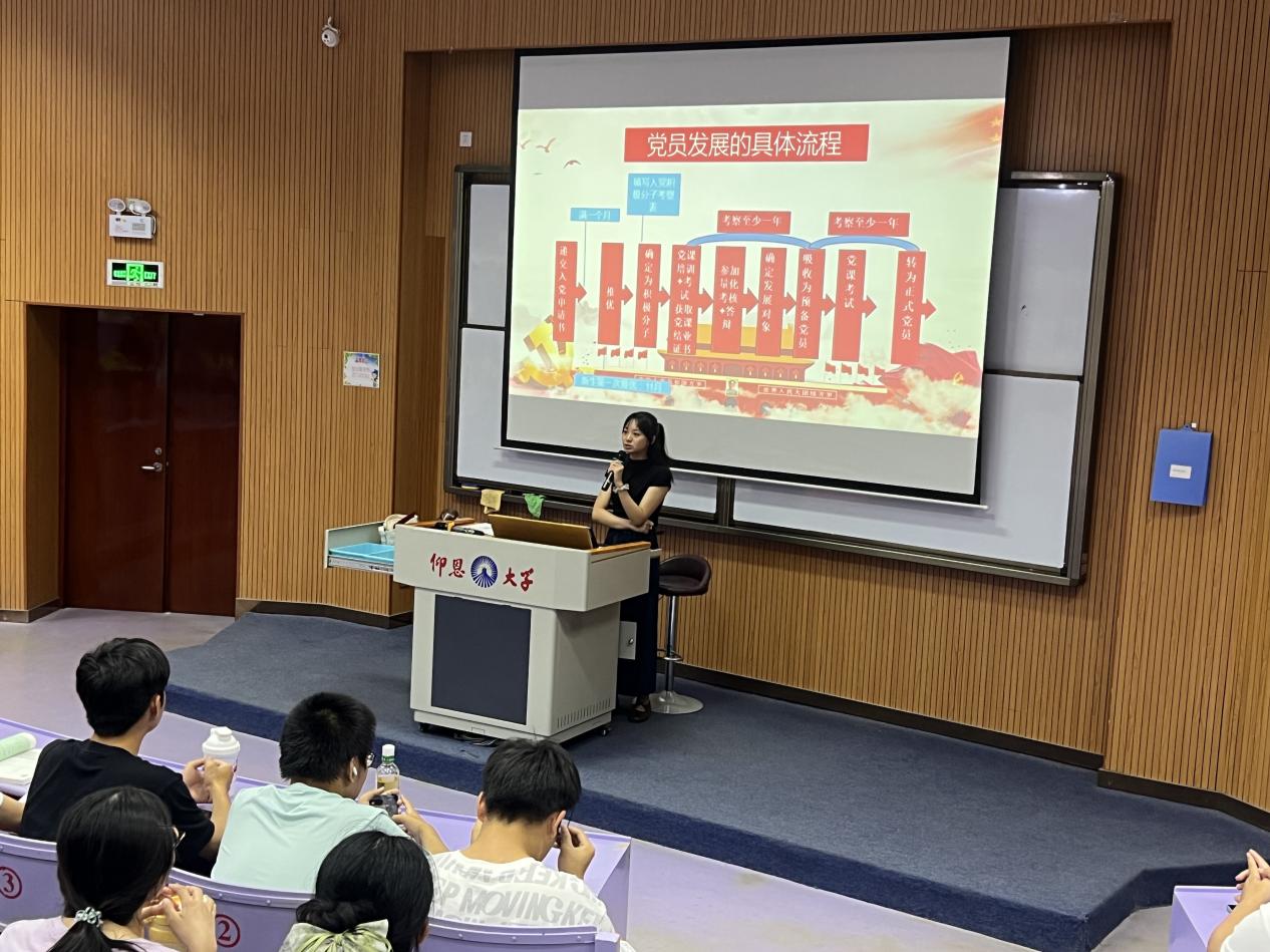 会上,庄秋荣对团员、党员的发展流程进行了详细介绍:递交书面申请-成为入党积极分子-确定发展对象-成为预备党员-转为正式党员。尤其对入党的条件和要求、入党申请书的书写和m88官网拟发展对象入党答辩评分细则的具体要求进行了强调,引导新生认识党的发展历程、端正入党动机。并鼓励同学们积极向党组织靠拢,认真学习马克思主义理论和中国特色社会主义理论,将爱国情怀落实到主动为同学服务的实际行动中,以高标准严格要求自己,勇于承担当代青年的历史与社会责任。