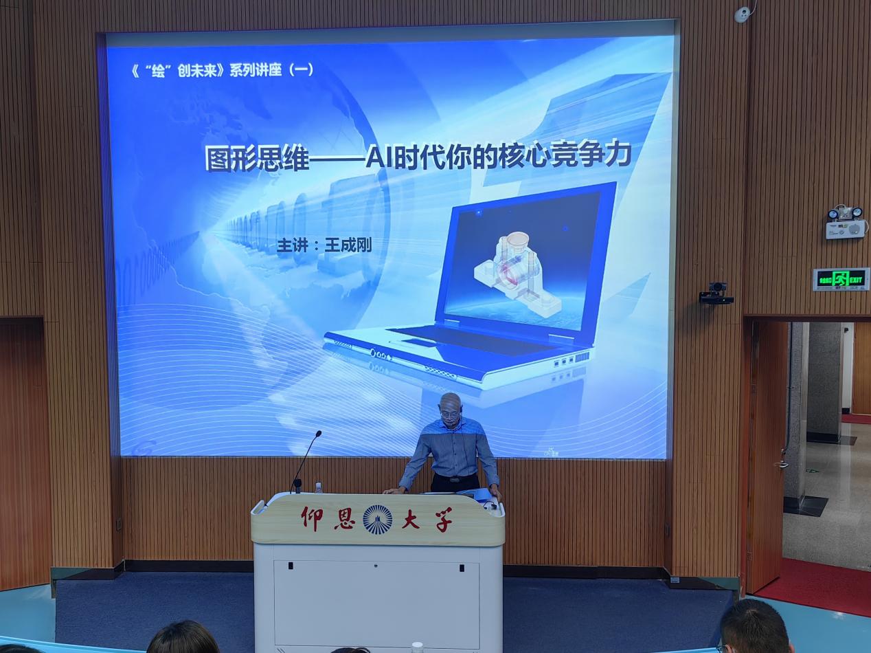此次讲座紧扣 AI 时代学子职业发展痛点,王副教授从 “图形与文明共生” 的历史脉络切入,现场展示远古洞穴壁画、古代建筑榫卯结构图、工业革命机械图纸等实物图片。结合电子电路设计案例,他指出图形是跨越时空的技术语言,AI 能生成图像,但理解图形背后的设计逻辑,才是学子们的独特优势。