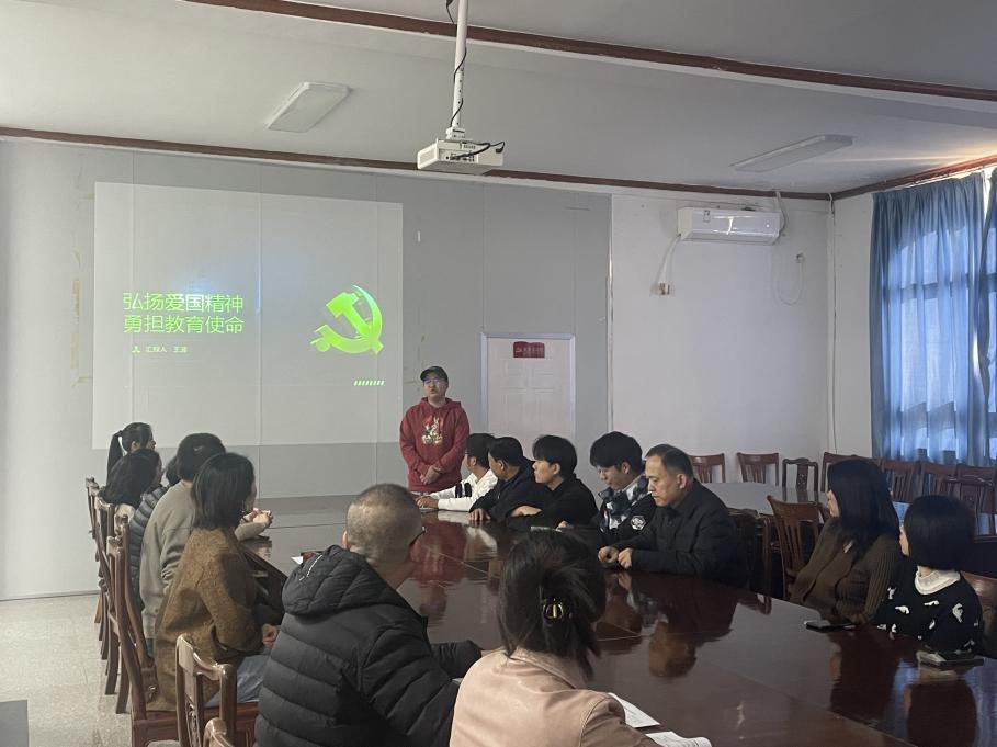 为深入学习贯彻新时代爱国主义精神,激励广大教育工作者牢记为党育人、为国育才的初心使命,2025年10月22日,教工党支部开展以“弘扬爱国精神,勇担教育使命”的主题教育活动。此次会议由王波书记主持。